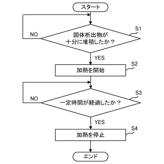 前記固液分離メッシュにおける前記固体析出物の堆積量が予め定められた量に達した場合、前記加熱装置に前記固液分離メッシュの加熱を開始させる、