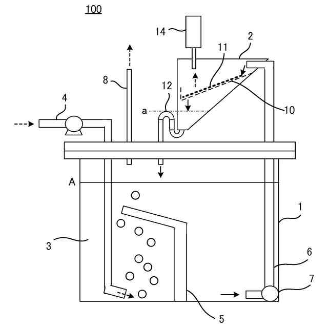 前記固液分離メッシュから落下した前記処理液は、前記S字トラップの上流側および前記再生容器の底部に貯留され、