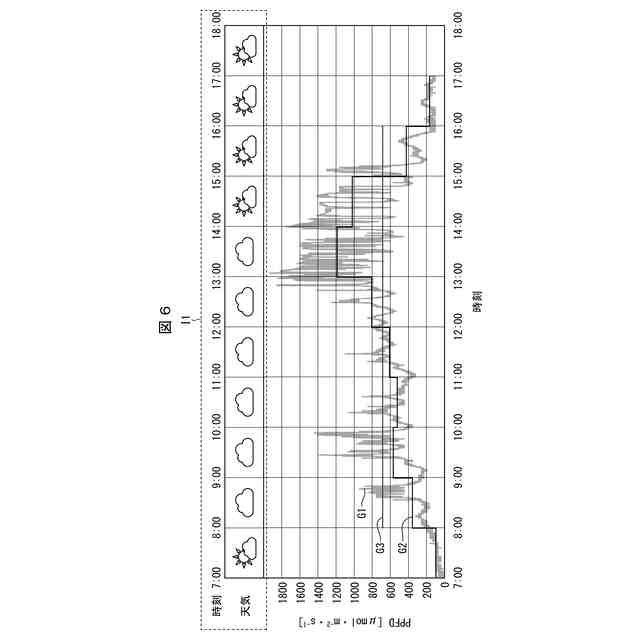 前記参照部は、前記対応情報として、所定期間における前記容器に照射した太陽光の光合成光量子束密度の平均値と、当該所定期間における前記容器が設置された地域の過去の気象情報と、の対応関係を示す情報を参照し、