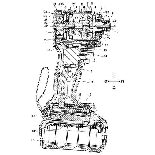 図4は、実施形態に係る電動工具の上部を示す縦断面図である。
