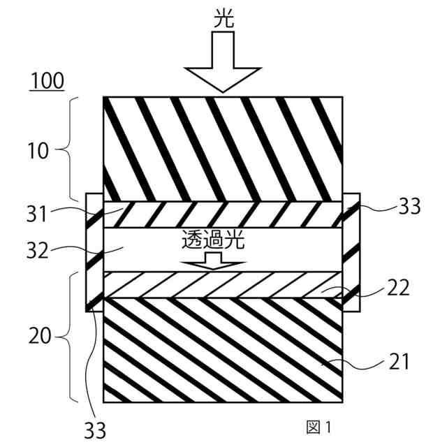 前記屈折率変化層と前記ボトムセルの間、又は、前記支持層と前記ボトムセルの間に間隙層と、を有し、