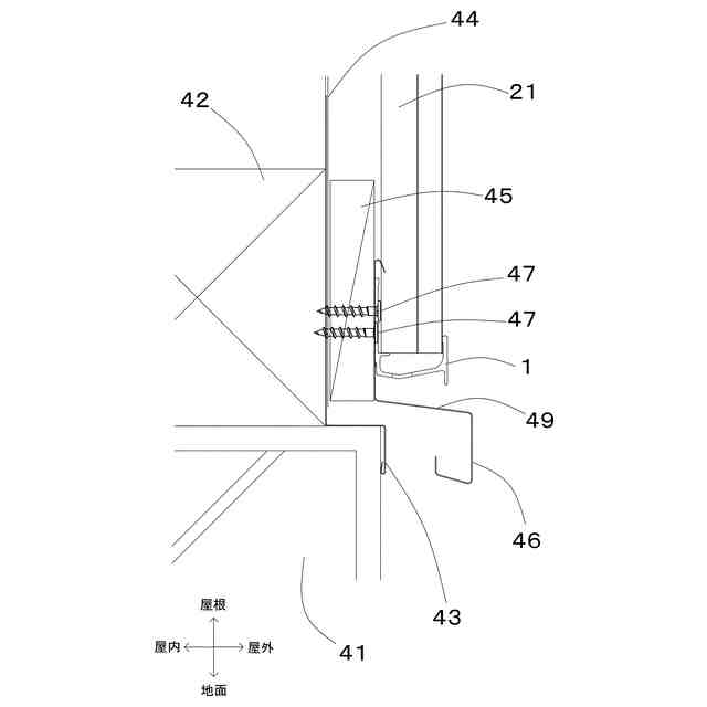 さらに該固定面の地面側の端部から屋外側に向かって屋内側傾斜面、底部、屋外側傾斜面を断面視略V字状に設け、