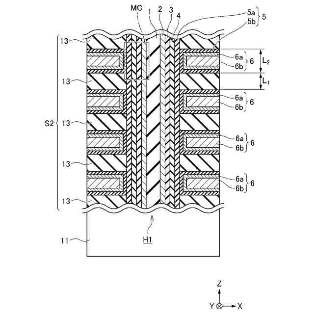 大容量の不揮発性メモリが備えるメモリセルアレイには、ビット線及びワード線と呼ばれる金属配線が多数配列されている。セルに接続されたビット線とワード線に電圧を印加し、ビット線とワード線に対応した1つのメモリセルにデータが書き込まれる。かかるワード線となる導電層と絶縁層とを交互に積層した積層膜を備えた、メモリセルを3次元配列した半導体記憶装置が提案されている。