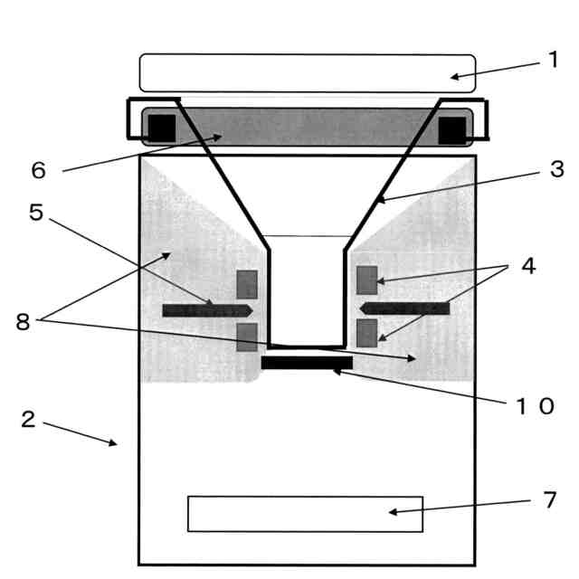 上述の課題を解決するため、前記便座と前記便座側の排便穴より内側の径全体が狭い、または内側の周囲にクビレや逆クビレがある、または漏斗状や逆漏斗状のように一部が狭い排便穴を持つ便座置台と、汚物類を収納する袋(以下、汚物入れ袋で表記)と、前記汚物類入れ袋を密封や切断する設備(以下、前記密封設備や前記切断設備で表記)を設置している。詳細な内容としては、図2で示すように、前記便座置台の内側に前記汚物入れ袋と前記密封設備や切断設備を設置して、連続でも利用することを可能にするために、前記便座周辺に前記汚物入れ袋を順繰りに繰り出すことができる収納容器(以下、カートリッジで表記、詳細は段落番号0009で説明)を設置していることを特徴とする。尚、前記便座置台の内側については、段落番号0010にて改めて説明する。