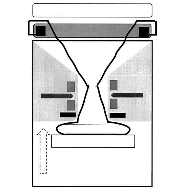 連続利用を可能とするための補足として、段落番号0009の続きになるが、前記汚物入れ袋の量自体を前記カートリッジ内により多く収納する必要がある。その対策としては、前記便座側の排便穴より内側の径全体が狭い、または内側の周囲にクビレや逆クビレがある、または漏斗状や逆漏斗状のように一部が狭い排便穴を付けることによって、無駄な空間を削減することとなり、それが前記汚物入れ袋自体の縮小化となり、次に使用に伴う飛沫汚れの拡散付着を限定することができ、最後に臭気含みの空気の体積量の削減ができることを特徴とする請求項1に記載した簡易防災トイレである。