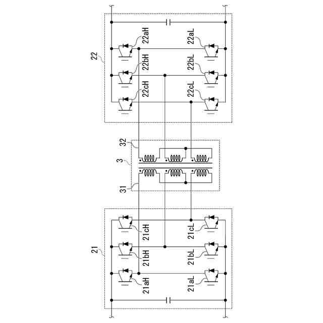 しかしながら、V2Xシステムを構成するためには、電動車両とは別に、電動車両が搭載するバッテリを充放電するためのV2X装置が必要である。V2X装置は、一般的に、絶縁型DC-DCコンバータとインバータとで構成される充放電部と、AC電源系統に異常があった場合に充放電部とAC電源系統とを切り離し両者を保護する系統連系保護部とで構成されている。そのため、V2Xシステムを構成するには、システムが複雑で高価であることから、広く普及するまでには至っていない。