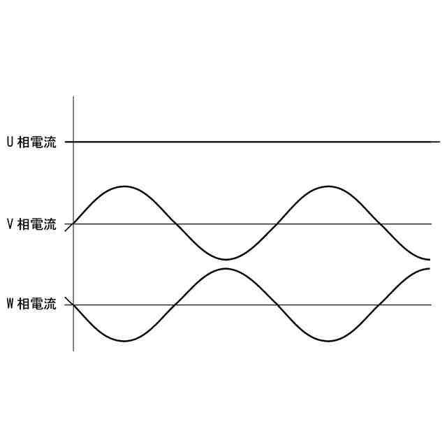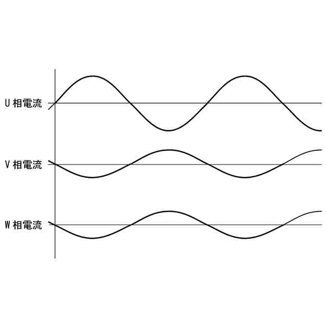 前記バッテリからの電力を前記交流電力供給源へ給電する場合には、前記第1インバータの各相の出力電流の波形は、ゼロクロスタイミングが一致した交番電流またはゼロ電流であり、かつ各相の電流の和がゼロである、