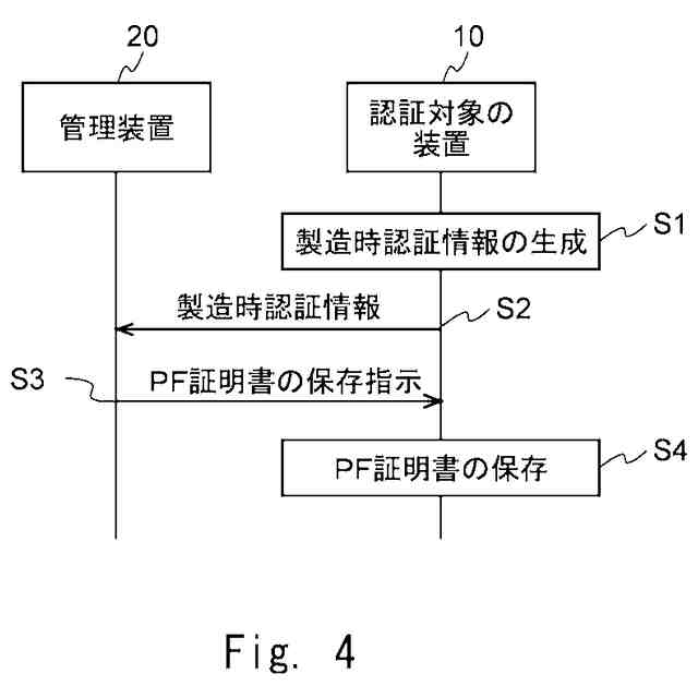 プラットフォーム証明書が有効であると判定された場合、プラットフォーム証明書に含まれる製造時認証情報を記憶装置に保存する。