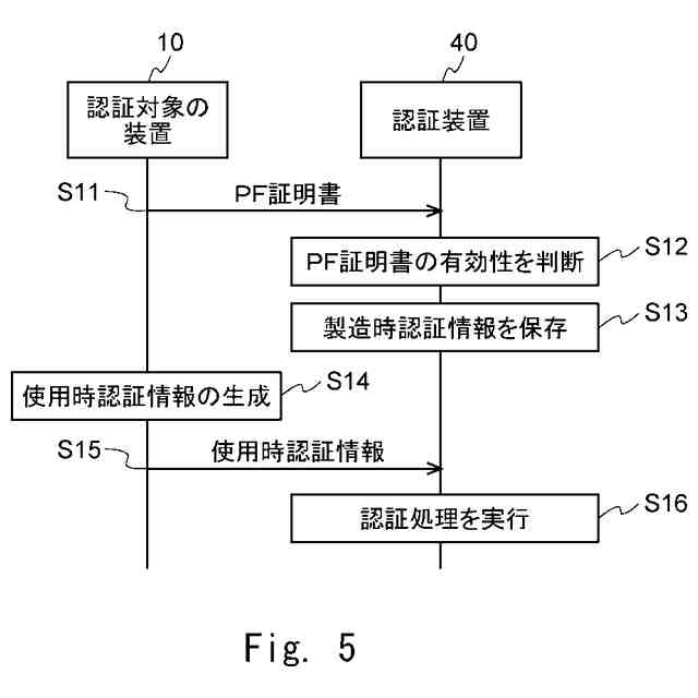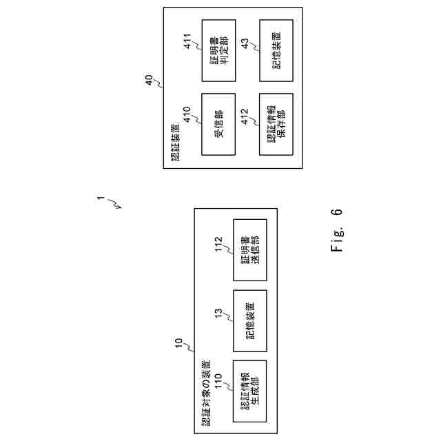 【解決手段】認証対象の装置は、認証対象の装置の認証情報を生成する認証情報生成部と、認証対象の装置の製造時に生成された認証情報を含むプラットフォーム証明書が保存された記憶装置と、認証対象の装置の使用場所において、記憶装置に保存されたプラットフォーム証明書を認証装置に送信する証明書送信部とを備える。認証装置は、認証対象の装置が送信したプラットフォーム証明書を受信する受信部と、受信したプラットフォーム証明書に対応する電子証明書を用いて、プラットフォーム証明書の有効性を判定する証明書判定部と、プラットフォーム証明書が有効であると判定された場合、プラットフォーム証明書に含まれる認証情報を、認証装置がアクセス可能な記憶装置に保存する認証情報保存部とを備える。
