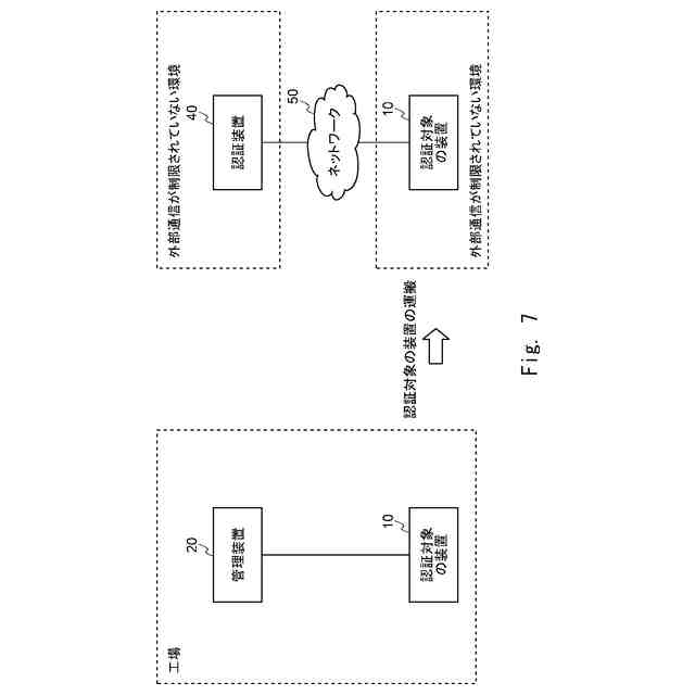 前記認証対象の装置は、前記認証対象の装置の使用場所において前記認証情報生成部が生成した認証情報である使用時認証情報を認証装置に送信する認証情報送信部を備え、
