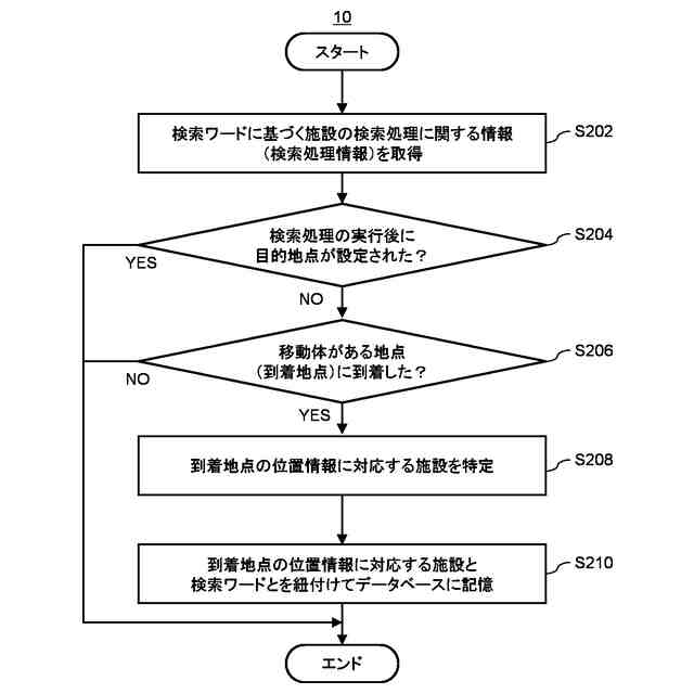 到着地点の位置情報に対応する施設と検索処理で使用された検索ワードとを紐付けてデータベースに記憶する流れの第2の具体例を示す図である。
