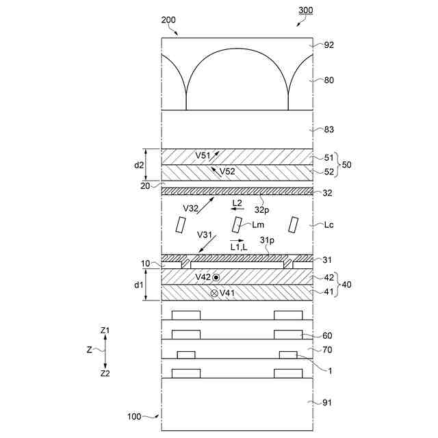 前記第1位相差制御部材および前記第2位相差制御部材は、それぞれ第1蒸着膜と、前記第1蒸着膜とは反対方向から蒸着された第2蒸着膜とを有する、