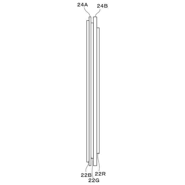 一様な第2厚さを有し、一方の表面が前記第2透過型イメージャーの第2表面に固定され、他方の表面が前記第3透過型イメージャーの第1表面に固定され、光を透過させる第2スペーサーと、