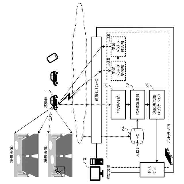 これに対し、本願の発明者は、地域のエリア毎に、渋滞、事故、事件等の時々刻々変化する危険の度合いを、ユーザ又はオペレータに予め明示することができないか、と考えた。例えば車載カメラの撮影画像を収集し、地域のエリア毎に、危険のリスク値を推定することができないか、と考えた。このとき、収集された撮影画像の数が少ないエリアであっても、できる限り確信度の高い危険のリスク値を推定することができることが好ましい。