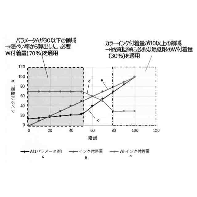 ホワイトインク付着量の制御の他の例を説明するための図である。