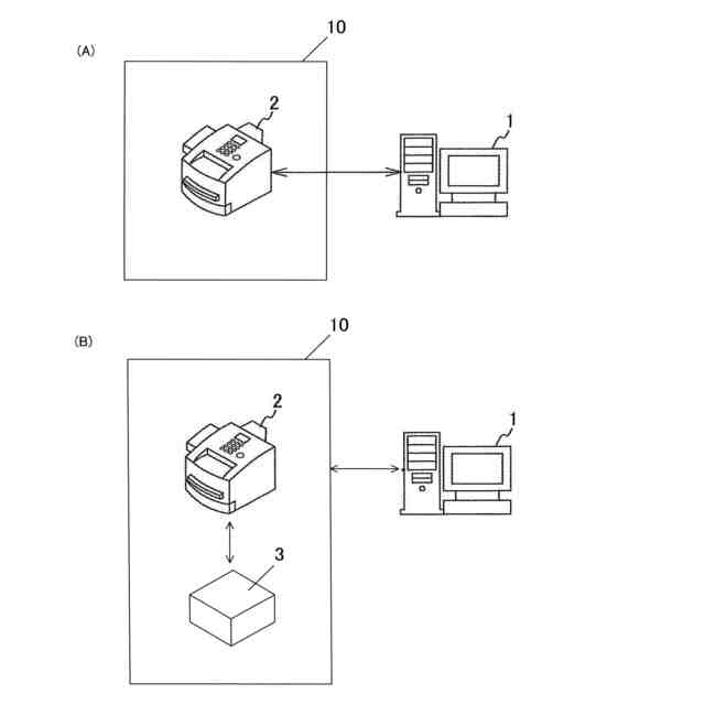 本発明の印刷システムの一例を説明するための図(A)及び(B)である。