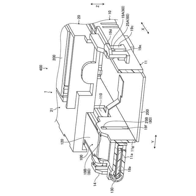 前記第一側壁には、前記第一側壁を前記延在方向に並ぶ複数の第一片部に分割する隙間が設けられており、