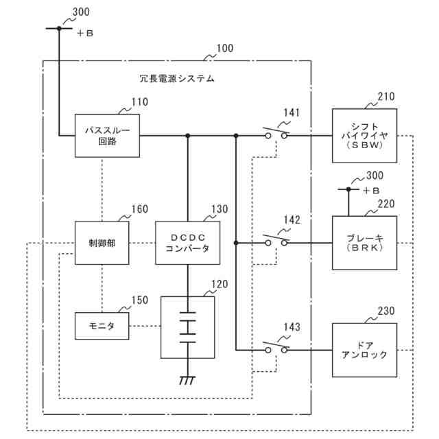特許文献1に、車両に搭載された複数の負荷(シフトバイワイヤ、ブレーキ、ドアアンロック)に電力を供給するメイン電源が失陥した場合に、メイン電源に代わってサブ電源から複数の負荷に電力をバックアップ供給することができる冗長電源システムが、開示されている。