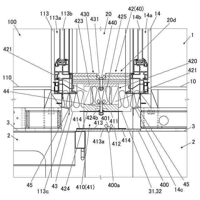 【解決手段】モバイルユニット同士を連結するとともに、対向する連絡口14a,113a間を取り囲んで通路スペース20を形成する連結包囲手段が、通路スペースを被覆する防水シート部30と、防水シート部における両側縁の下端部を保持する床部40と、を有し、床部40は、モバイルユニット間に架け渡された支持部41と、支持部41の上面に着脱自在に固定された床面部42と、床面部を支持部41に対して固定するための第一固定材44と、を備え、第一固定材は、床面部から支持部に向かって上から下に設けられることで床面部を支持部に固定している。
