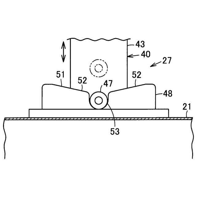 前記保持装置は、前記連結機構が動作して前記位置決め部材を前記溝の前記先端部に移動させる際に、前記位置決め部材の少なくとも一部が前記ガイド溝に進入する中間位置まで前記保持装置により前記アームを保持し、前記位置決め部材が前記中間位置から前記溝の前記先端部に向けて移動する際には前記アームの保持を解除する