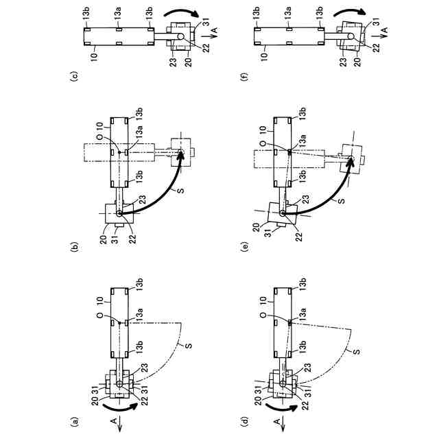 上記無人搬送車は、アームを自由に旋回可能としているが、アームの旋回を自由状態と制限状態とに切り換えられれば、アームをより多様な状況に対応させることが可能となる。