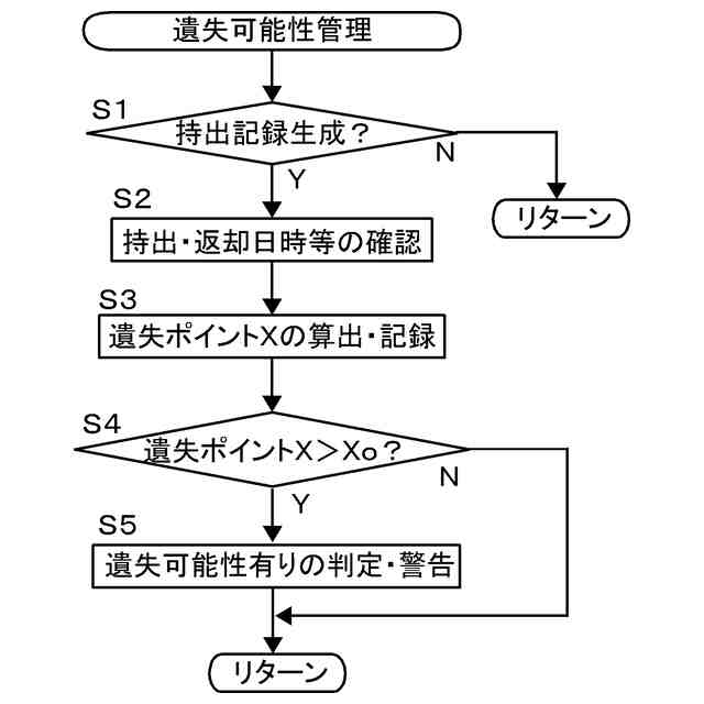 倉庫などの空間内に於ける任意の資産の保管状況や資産の移動状況、持出若しくは貸出状況(以下「稼働状況」と称する。)を管理するシステムに於いて、状況を管理されている資産が、持出、返却、保管を繰返すうちに遺失してしまうことがある。そのような遺失してしまった資産の遺失までの稼働状況には、ある程度の傾向があるので、稼働状況に同様の傾向を有する資産は、今後、遺失してしまう可能性があると判断できる。そこで、資産の稼働状況を管理するシステムに於いて、管理されている各資産の稼動状況が遺失した資産の遺失までの稼働状況に類似しているか否かを判定して各資産の遺失の可能性の有無を検知し、遺失の可能性のある資産が見つかった場合に、その旨を管理者等に通知できるようになっていれば、資産の遺失の防止が図られると考えられる。