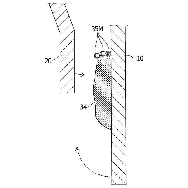 自動車の車体には、例えばボンネットフード、ドア、フェンダ、バックドア等の多くの車体構成部品が装着されており、これら各構成部品の車体内外部には、それぞれインナーパネルおよびアウターパネルが設けられている。図7に示すように、アウターパネル10とインナーパネル20を接合する方法として、ヘミング曲げが用いられている。さらに、このヘミング部に接着剤60を塗布し、パネル間のズレを防止する工法が広く採用されている。より具体的には、各パネルのプレス成型後、接着剤を塗布した後にヘミング曲げを実施し、その後、塗装焼付時に接着剤を硬化させるのが一般的である。したがって、この接着剤60には、加熱(120~200℃程度)によって硬化する熱硬化型のものが使用される。また、接着剤60は、導電性と非導電性のいずれも用いられる。ヘミング部に用いられる導電性接着剤は、カーボン系の導電性フィラーが接着剤中にて網状に連結し、導電性を確保している。