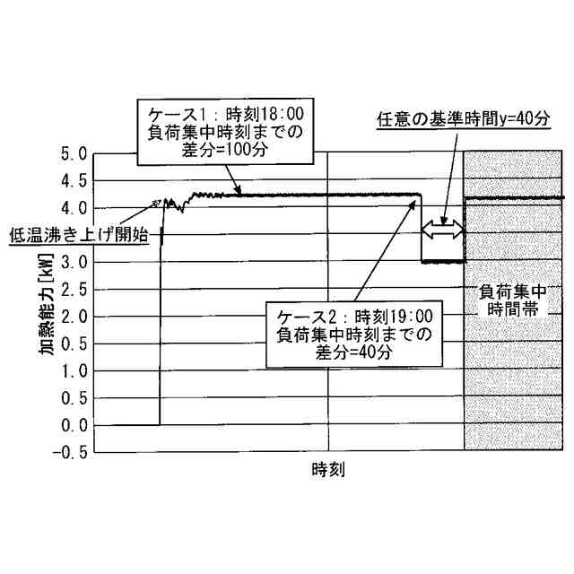 前記差分時間が基準時間未満になると前記加熱手段の加熱能力を低下させ、現在時刻が前記負荷集中時間帯の開始時刻を過ぎると前記加熱手段の加熱能力を上昇させる加熱能力制御手段と、
