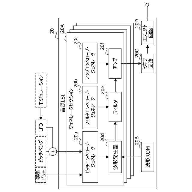 本開示の一実施形態に係る電子楽器に備えられる音源LSI(Large Scale Integration)の構成を示すブロック図である。