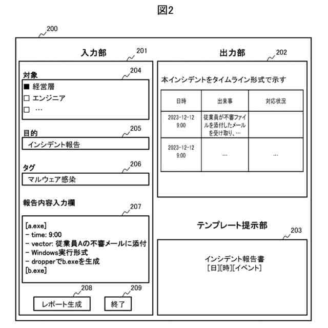 プロセッサ及び記憶装置を有するセキュリティレポート作成支援システムにおいて、