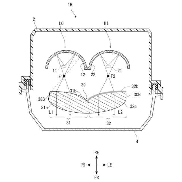 特許文献1では、第1ランプユニットと第2ランプユニットの二つのランプユニットと、両ランプユニットに共有の単一のレンズを備え、単一レンズは、第1ランプユニットに用いられる第1配光部と、第2ランプユニットに用いられる第2配光部の両方を有する。