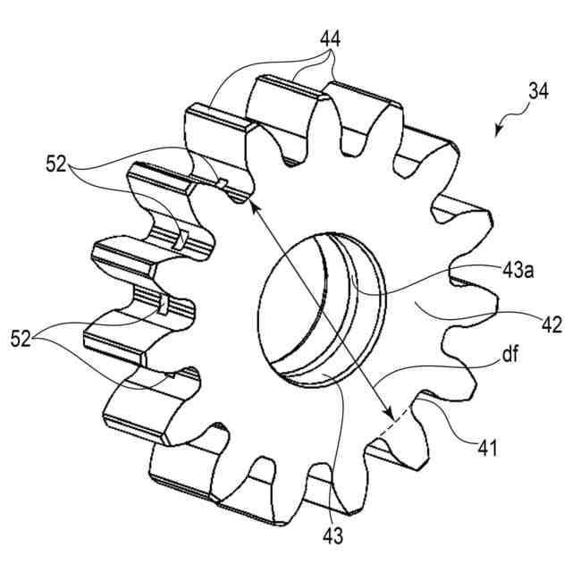 【解決手段】 他の歯車と噛み合わせて用いられ、噛み始め側から潤滑油が供給される歯車は、歯底円直径を規定する歯底円を有する基部と、前記基部の前記歯底円の周方向に所定ピッチで設けられる複数の歯部と、前記複数の歯部のうち、互いに隣接する歯部間に前記歯底円に対してそれぞれ凹状に設けられ、前記噛み始め側からの前記潤滑油が入れられる凹部とを有する。