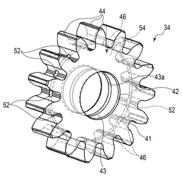 第2変形例に係るドリブンギヤの概略的な断面図。