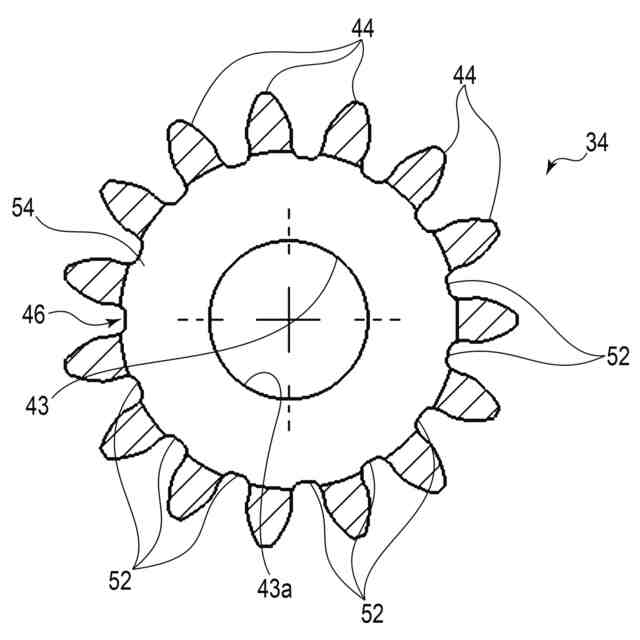 図3A及び図3Bに示すドリブンギヤの側面図。
