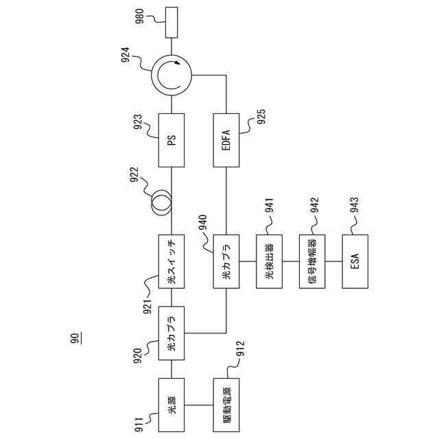(3)上記(1)又は(2)に記載の光ファイバ特性測定装置において、前記フィルタは、前記ポンプ光増幅器と前記サーキュレータとの間に接続されてよい。このようにすることで、第1重畳光の成分に由来する誘導ブリルアン散乱光の発生が抑制される。第1重畳光の成分に由来する誘導ブリルアン散乱光によって、被測定光ファイバ80の長さが制限される。第1重畳光の成分に由来する誘導ブリルアン散乱光の発生が抑制されることによって、被測定光ファイバの長さの制限が緩和される。