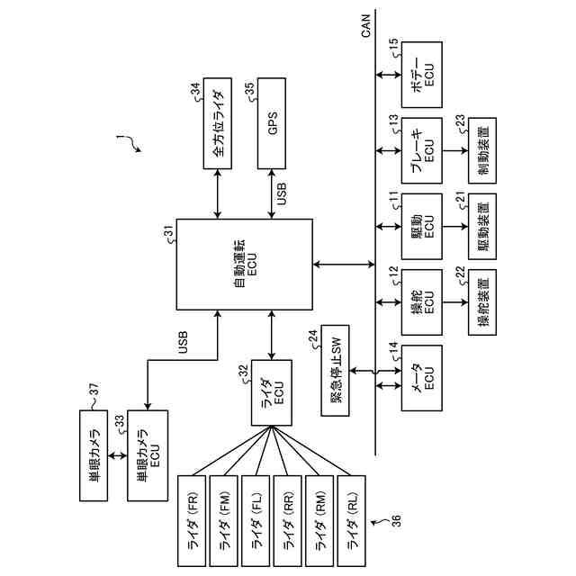 図1は、実施形態に係る車両制御装置が搭載される車両1のシステム構成の一例を示すブロック図である。車両1は、自動運転機能を搭載しており、ユーザ(運転者)の運転操作によらない自動運転による走行が可能である。なお、自動運転には、車両1の走行における操作の一部が自動化された(ユーザによる部分的な運転操作を要する)半自動運転が含まれる。
