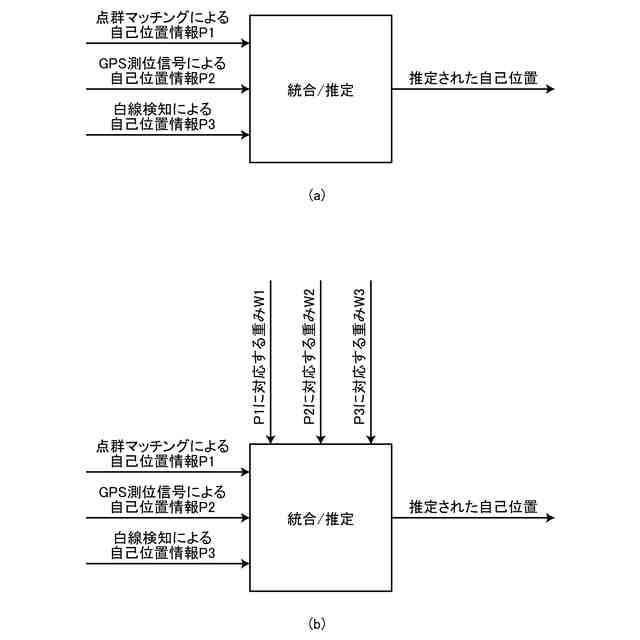 ところで、自車両の位置を推定する情報としては、上記の点群データのマッチングで求めたもの以外にも、GPS(Global Positioning System)受信機が受信した測位信号に基づくものや、道路の白線を検知して得られるもの等の複数の自己位置情報が利用可能である。従って、これら複数の自己位置情報を状況に応じて効果的に、自己位置推定に利用することが求められる。
