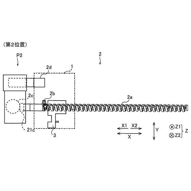 前記第1位置と前記第2位置との間において前記可動部を往復移動させるとともに、送りねじ部材と従動部材とを含む移動機構と、を備え、