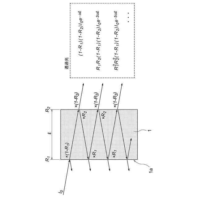 光の吸収がある場合の多重反射の透過率を説明するための概念図である。