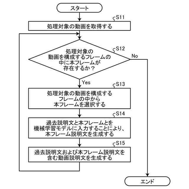 従来、動画から動画のキャプション(動画キャプションともいう。以下、「動画説明文」と記載する。)を生成する技術が知られている。例えば、画像に含まれる要素を単語として出力する多層式のニューラルネットワークに監視カメラで撮影された動画を入力し、動画の説明文を生成する技術が知られている。