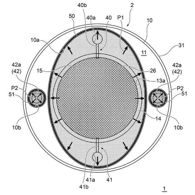 前記孔内に配置されて、前記孔を、前記第1面側の第1空間と前記第2面側の第2空間とに仕切る膜と、