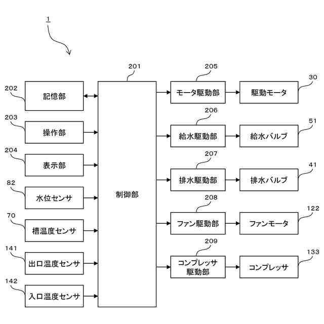 筐体内に配置され、水が溜められる外槽と、