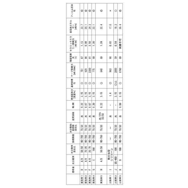 しかしながら、本特許は硬化剤の使用を前提としたものではなく、有機溶剤に侵されやすいため、溶液キャストで製造されるシート成型用のキャリアフィルムとして用いるには不向きである。