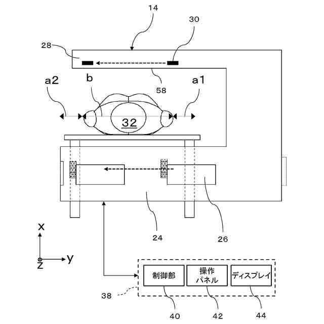 特許文献2に開示される装置では、低エネルギーXを用いて被検体に対してプリスキャンが実行され、これにより被検体内の注目組織の境界が検出される。その境界の位置に基づいて本スキャンにおけるスキャン条件が定められる。その場合においては、注目組織の幅内により多くの有効画素が設定されるように、照射シーケンスが定められる。照射シーケンスは、助走部分と、実行部分と、オーバーラン部分と、により構成される。助走部分で走査速度等が可変設定される。