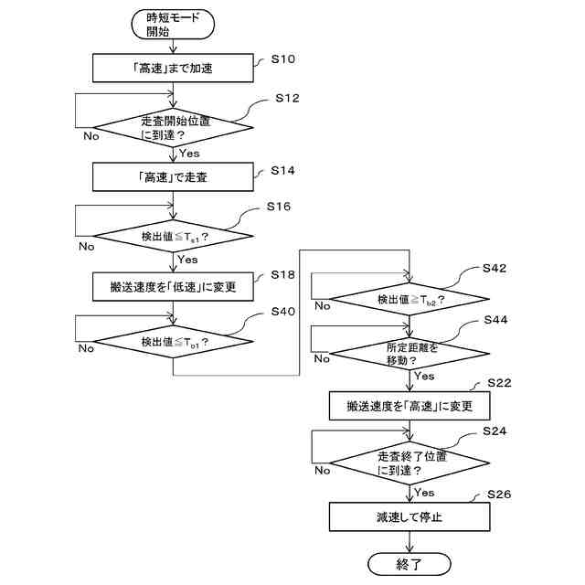前記制御部は、前記直交方向についての前記範囲の中央部において前記検出部が検出した強度に基づき、前記走査の速度を制御する、