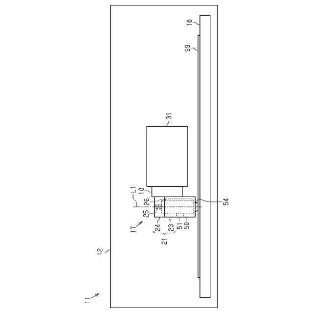 印刷部13は、キャリッジ15を有する。キャリッジ15は、ヘッド14を搭載する。キャリッジ15は、媒体99に対して走査するように構成される。キャリッジ15が走査することによって、ヘッド14は、媒体99の幅にわたって液体を吐出できる。