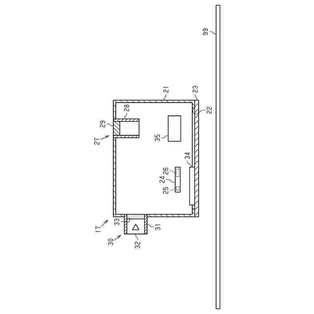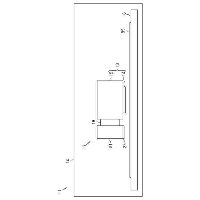 印刷装置11は、印刷部13を備える。印刷部13は、筐体12に収容される。印刷部13は、媒体99に印刷するように構成される。一例では、印刷部13は、媒体99に液体を吐出することによって媒体99に画像を印刷する。印刷部13は、例えば、媒体99に対して走査するシリアルヘッド方式である。印刷部13は、媒体99の幅にわたって一斉に液体を吐出可能なラインヘッド方式でもよい。印刷部13は、インクに限らず、トナーによって印刷するように構成されてもよい。