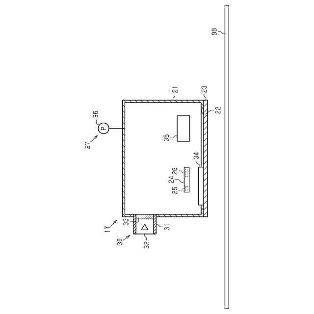 印刷部13は、キャリッジ15を有する。キャリッジ15は、ヘッド14を搭載する。キャリッジ15は、媒体99に対して走査するように構成される。キャリッジ15が走査することによって、ヘッド14は、媒体99の幅にわたって液体を吐出できる。