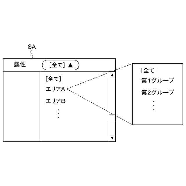 また、各グループは、各装置が属するエリアに対する下位の属性を示す。例えば、グループは、上述の装置の具体的な設置場所であって、具体的に、会社の職場や学校のクラスなどの組織や集団、又は、それらのフロアーや部屋などを示す情報である。