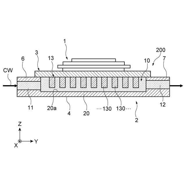 従来の冷却装置としては、例えば特許文献1に記載されている技術が知られている。特許文献1に記載の冷却装置は、インバータケースを備えている。インバータケースは、一方の面にインバータ回路が取り付けられるベース部を有する。ベース部には冷却水を流す流路が設けられ、流路には水路蓋部が設けられている。水路蓋部の上面にはインバータ回路が設けられている。水路蓋部の下面には放熱用の放熱部材が設けられている。